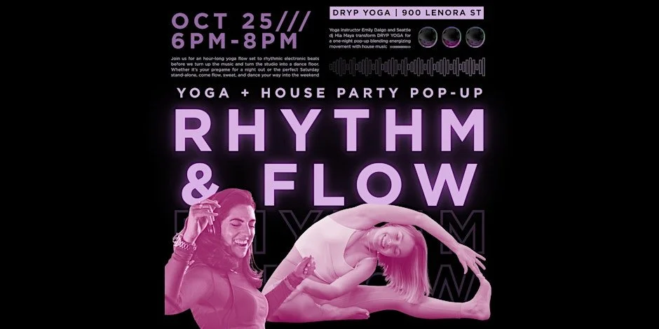 Join yoga instructor Emily Dalgo and Seattle dj Mia Maya at DRYP YOGA for a one-night pop-up blending energizing movement with house music.