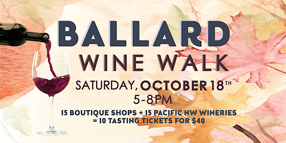 Explore the charming Ballard neighborhood and experience delicious Pacific Northwest wines at the Visit Ballard Wine Walk on Saturday, October 18, 2025. Visit Ballard has paired 15 boutique shops with 15 PNW wineries so you can taste a variety of wines in unique settings throughout the historic Ballard neighborhood. Enjoy the best of autumn in Ballard with us!