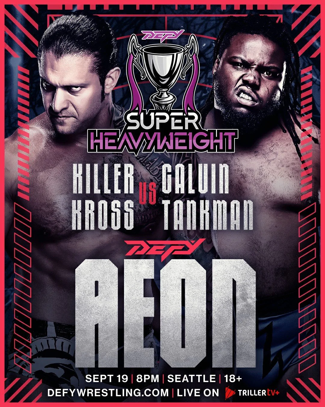 Catch heated competition with Matches to look forward to, like: Killer Kross (formerly known as Karrion Kross from WWE) vs. CalvinTankman for the DEFY NW Super heavyweight Cup. CLARK CONNORS with an open challenge for the DEFY World Championship and More!