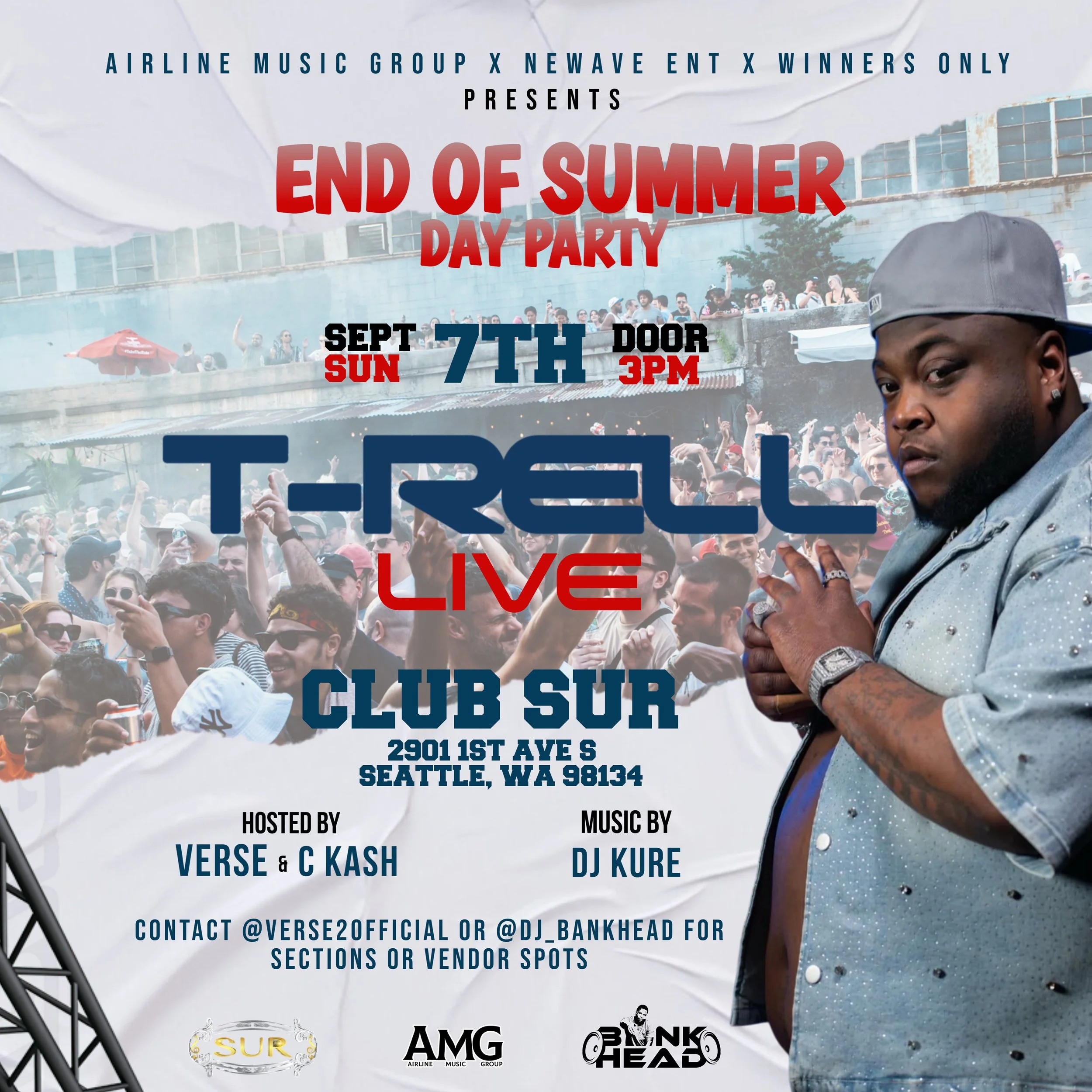 End the summer in style this Sunday, September 7th at Club Sur Seattle with the End of Summer Day Party featuring T-Rell live on stage 🎤🔥