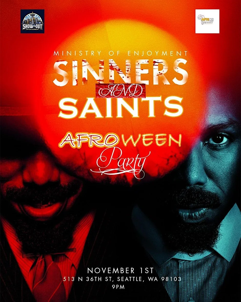 Back to All Events Sinners and Saints Afroween Friday, October 31, 2025 9:00 PM Saturday, November 1, 2025 2:00 AM 2219 4th Avenue Seattle, WA, 98121 United States (map) Google Calendar ICS