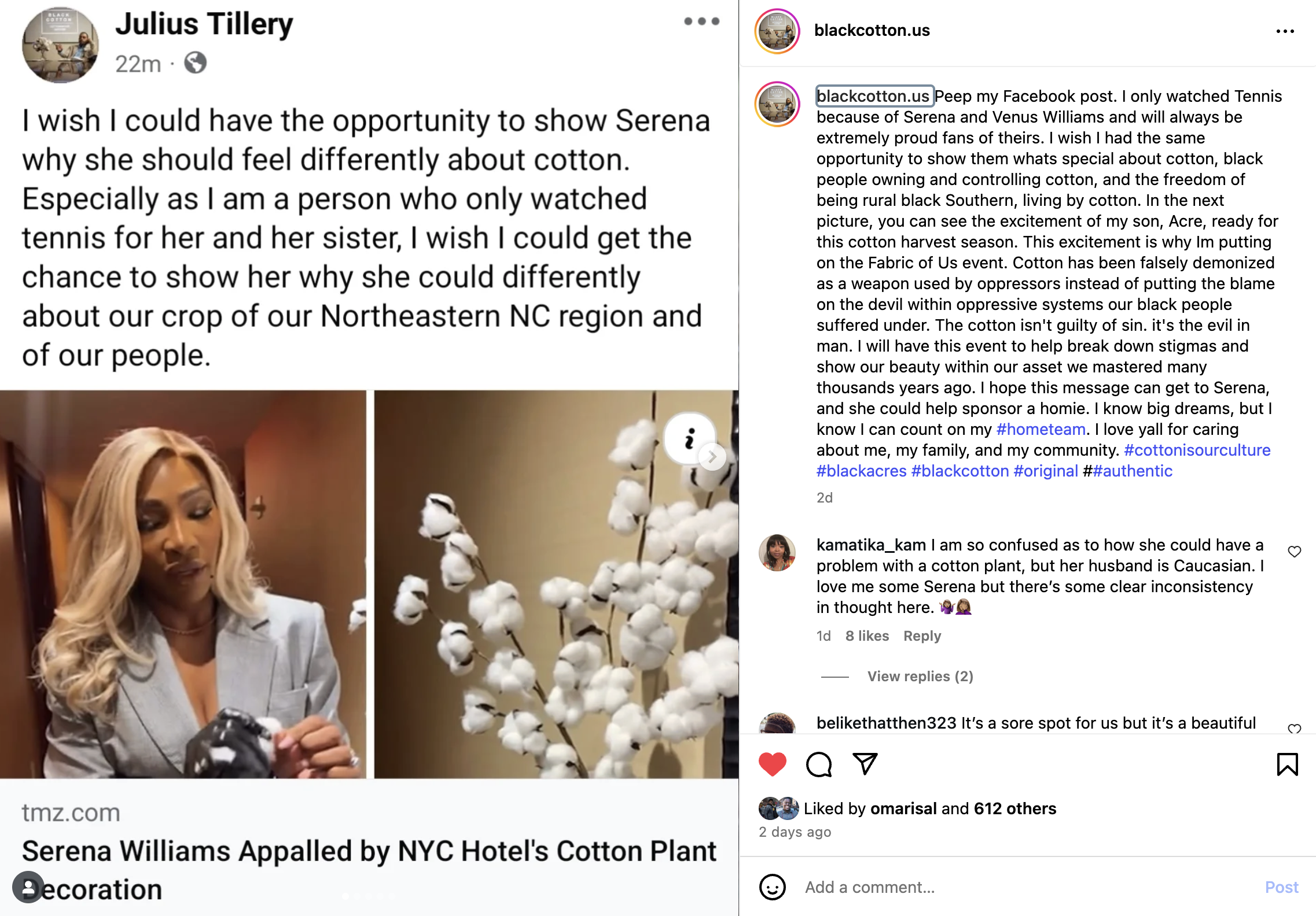 Tillery hopes Williams will visit his farm to learn more about Black Cotton and the plight of Black farmers nationwide. (Photo: BlackCotton.us)