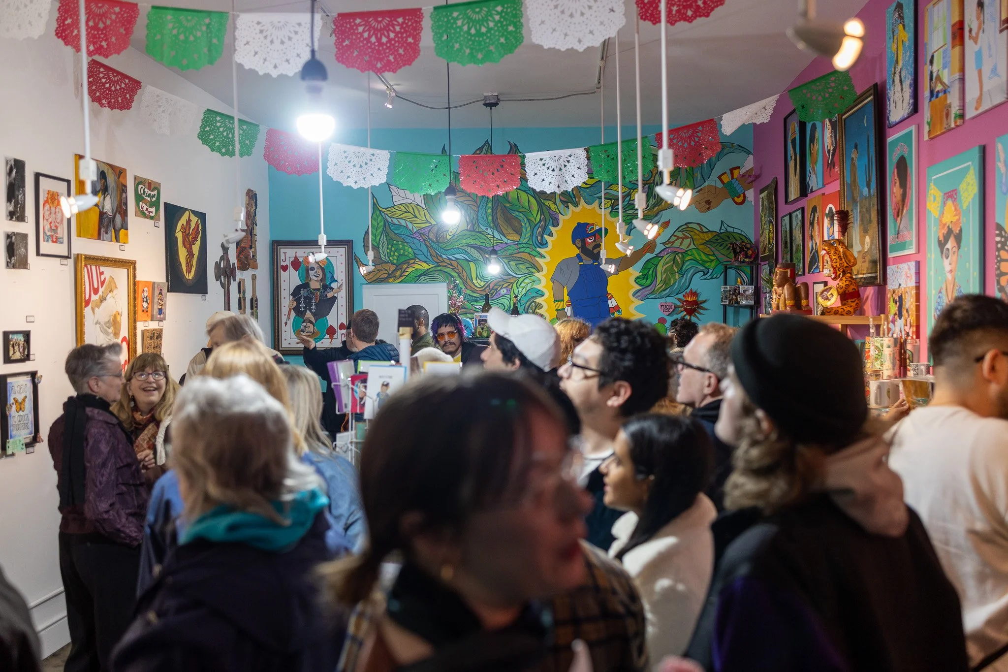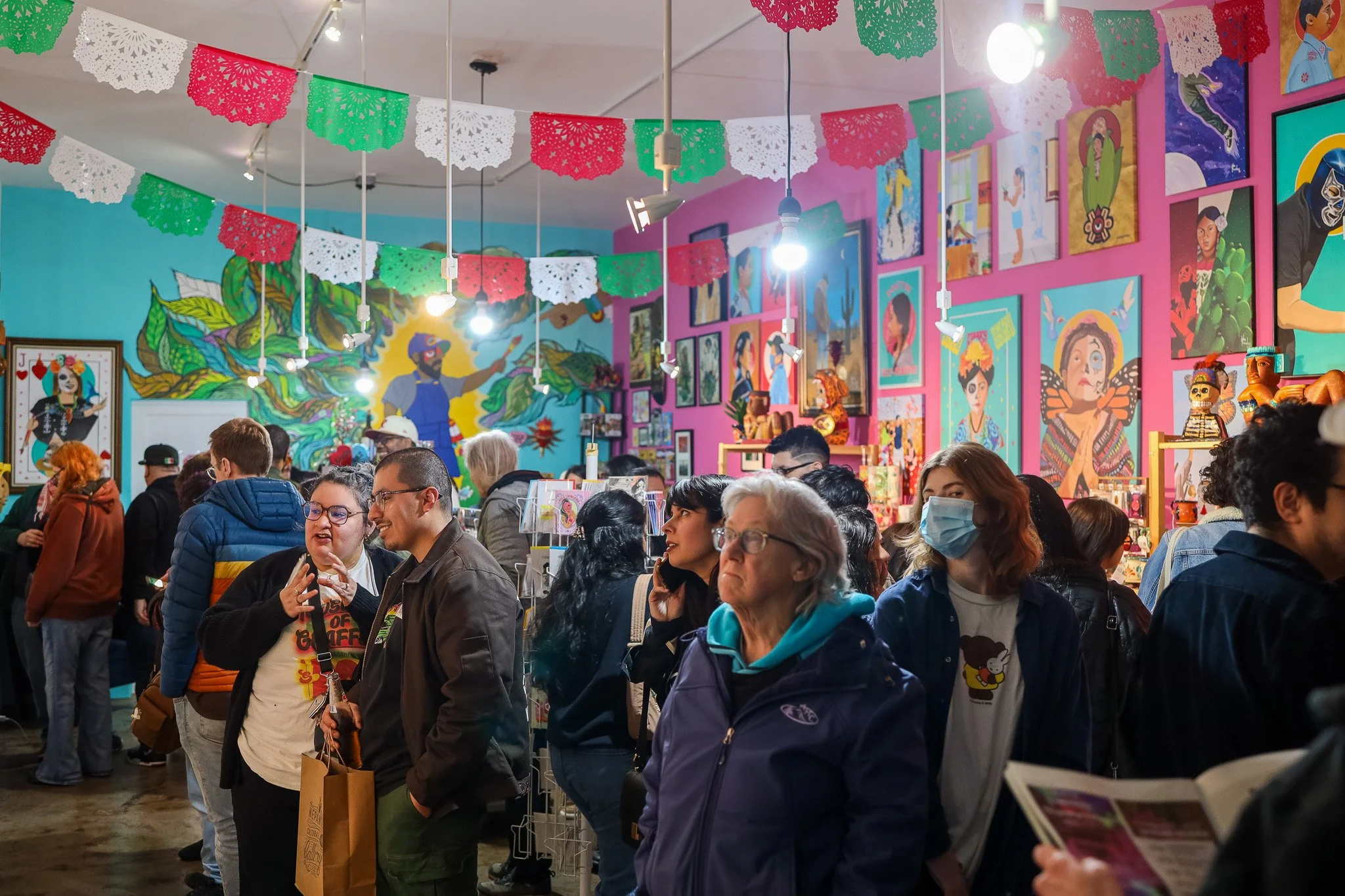 Community gathers at the Nepantla Cultural Arts Gallery. (Photo: Erik Kalligraphy)