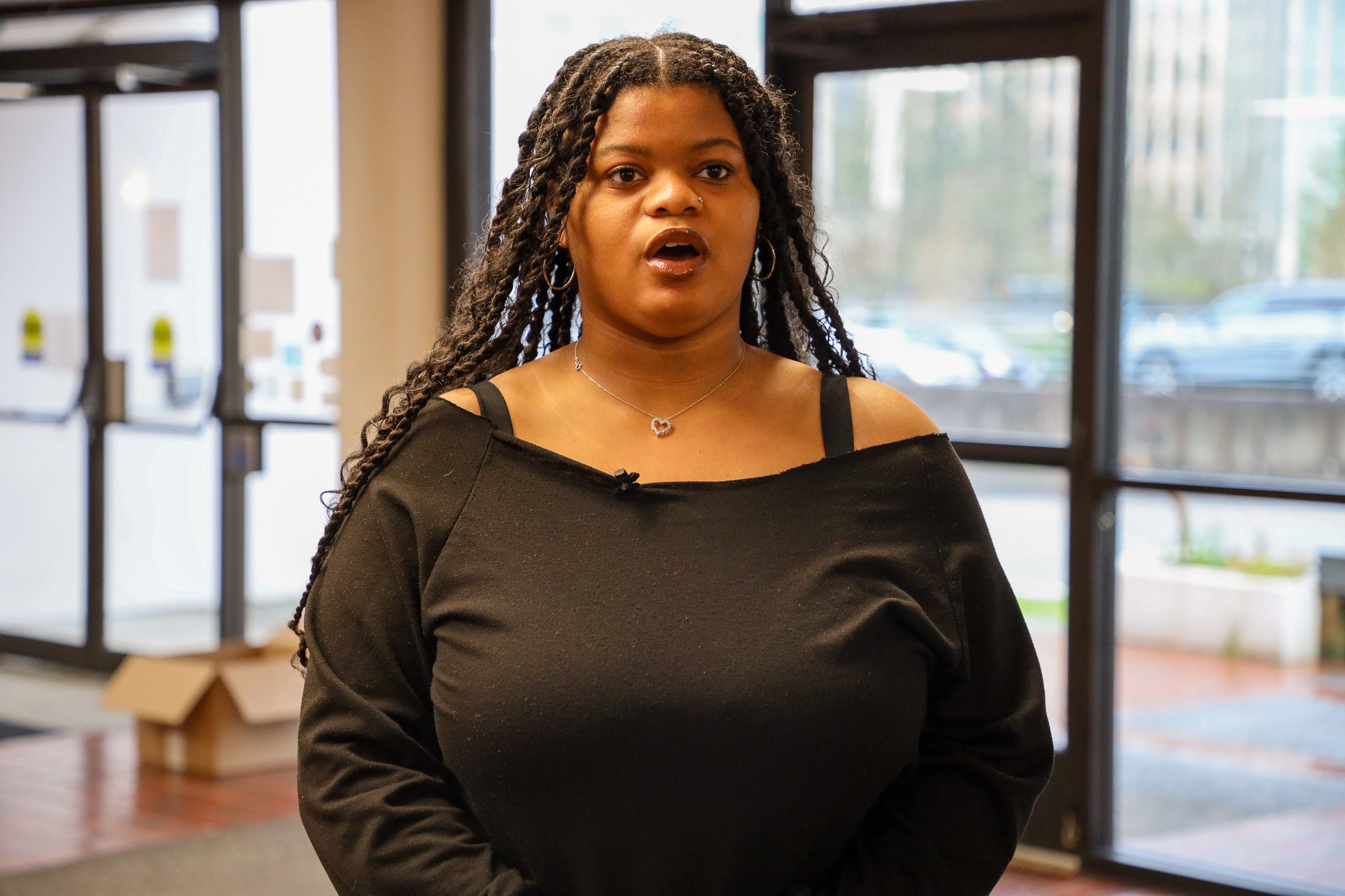Harmonie White speaks at United Churches of Olympia on Criminal Justice Advocacy Day on Monday. (Photo: Erik Kalligraphy)