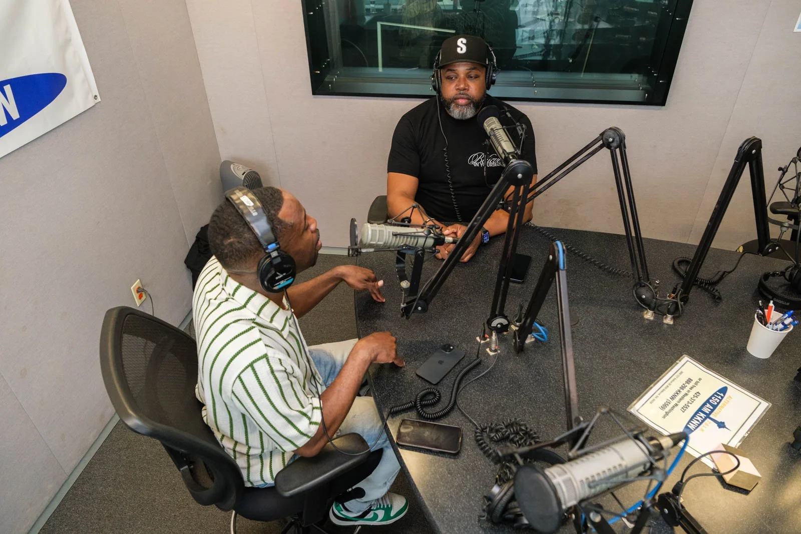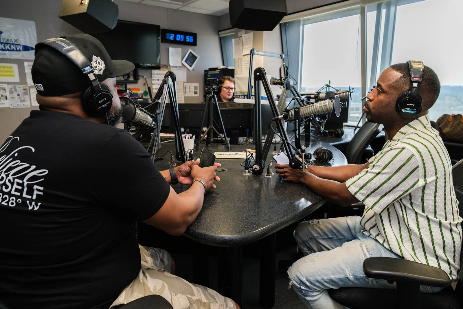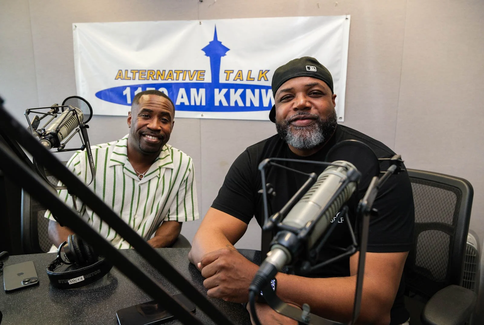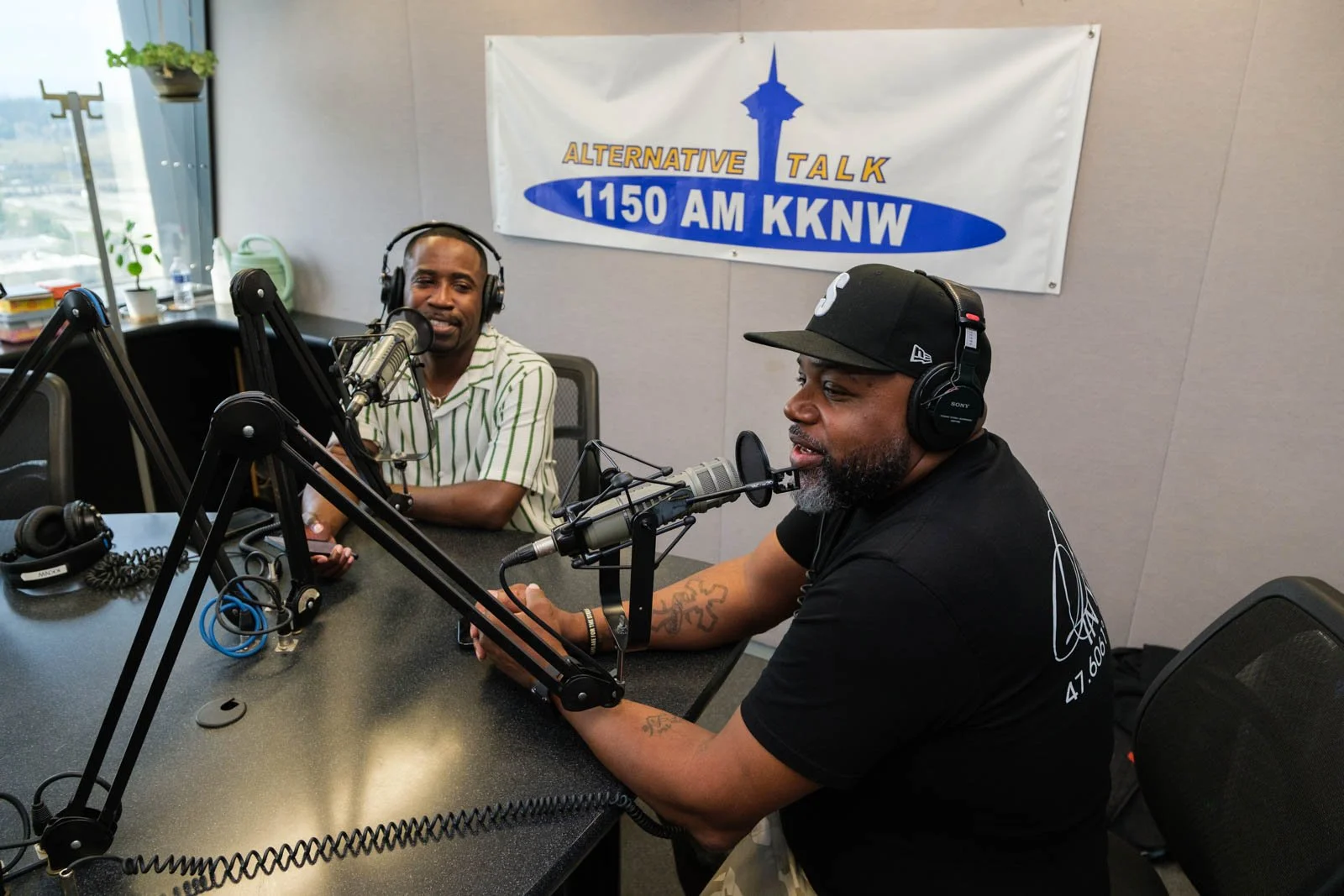 Deaunte Damper smiles in the KKNW studio across from Omari Salisbury. (Photo: Jordan Somers)