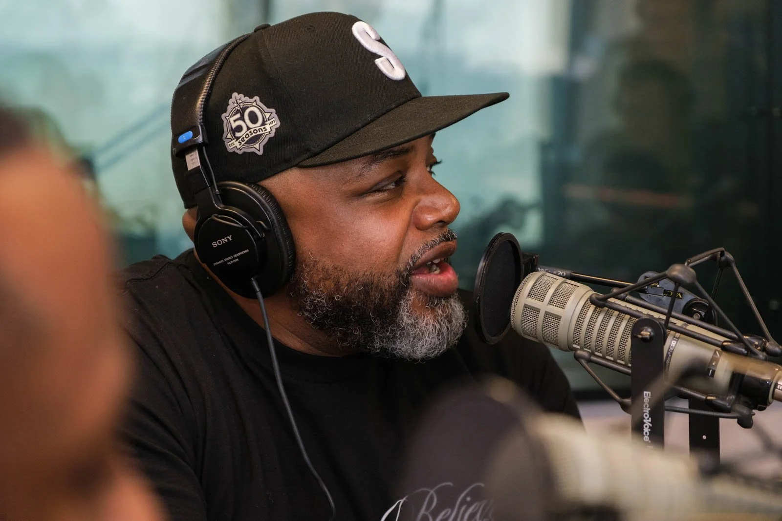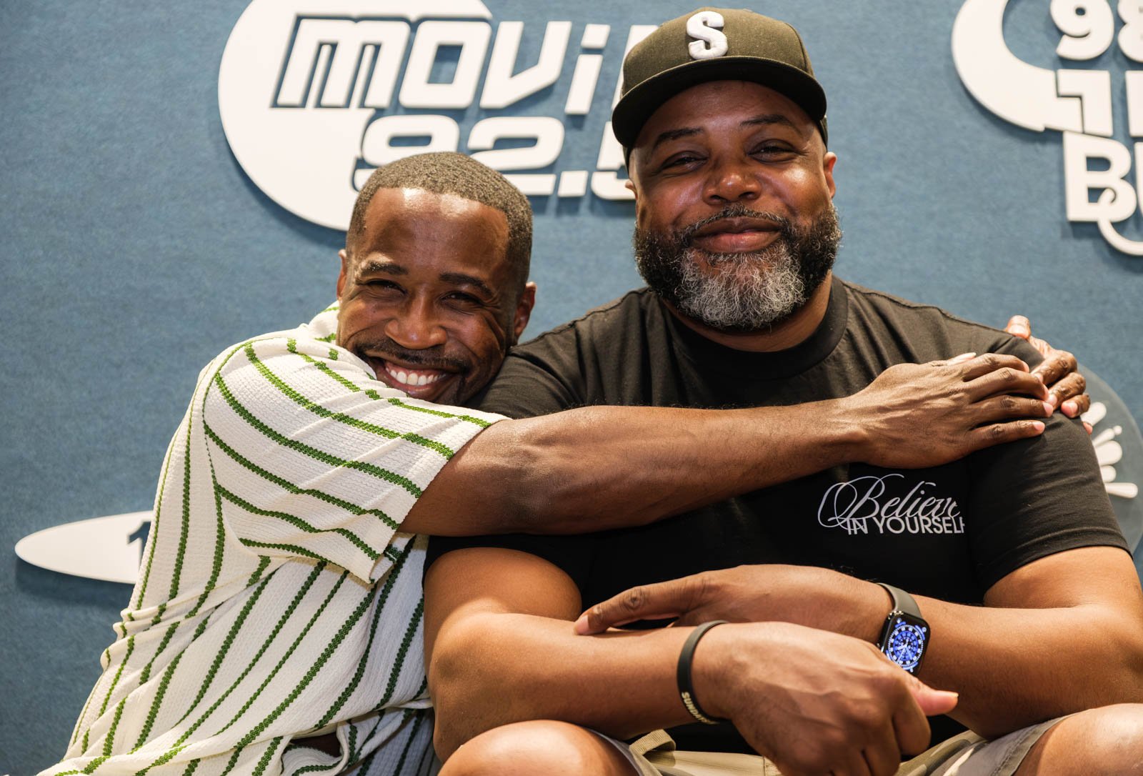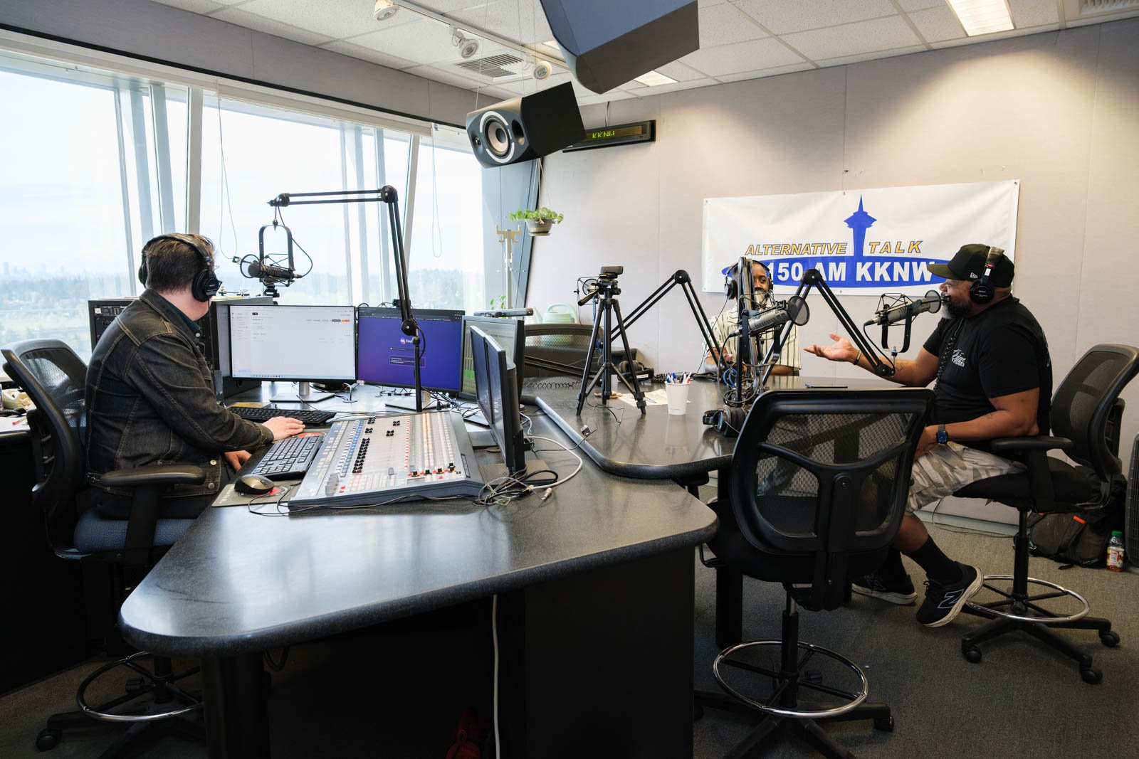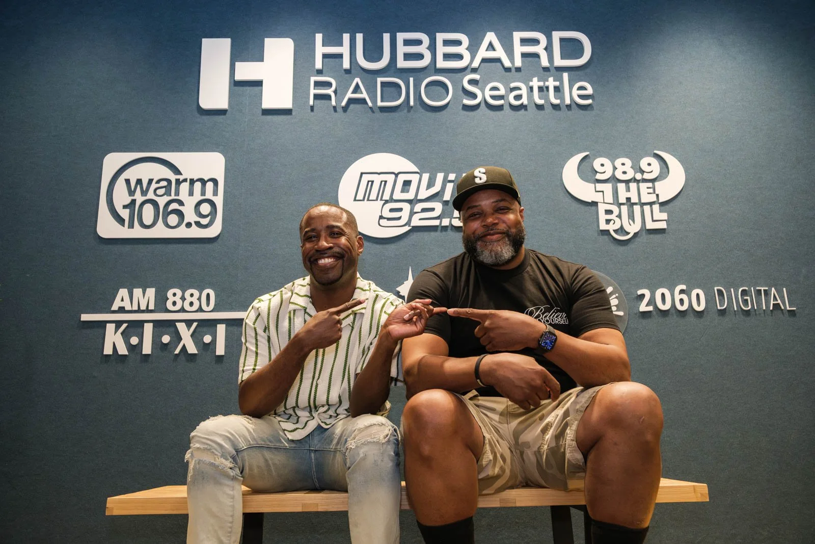 Deaunte Damper smiles in the KKNW studio across from Omari Salisbury. (Photo: Jordan Somers)