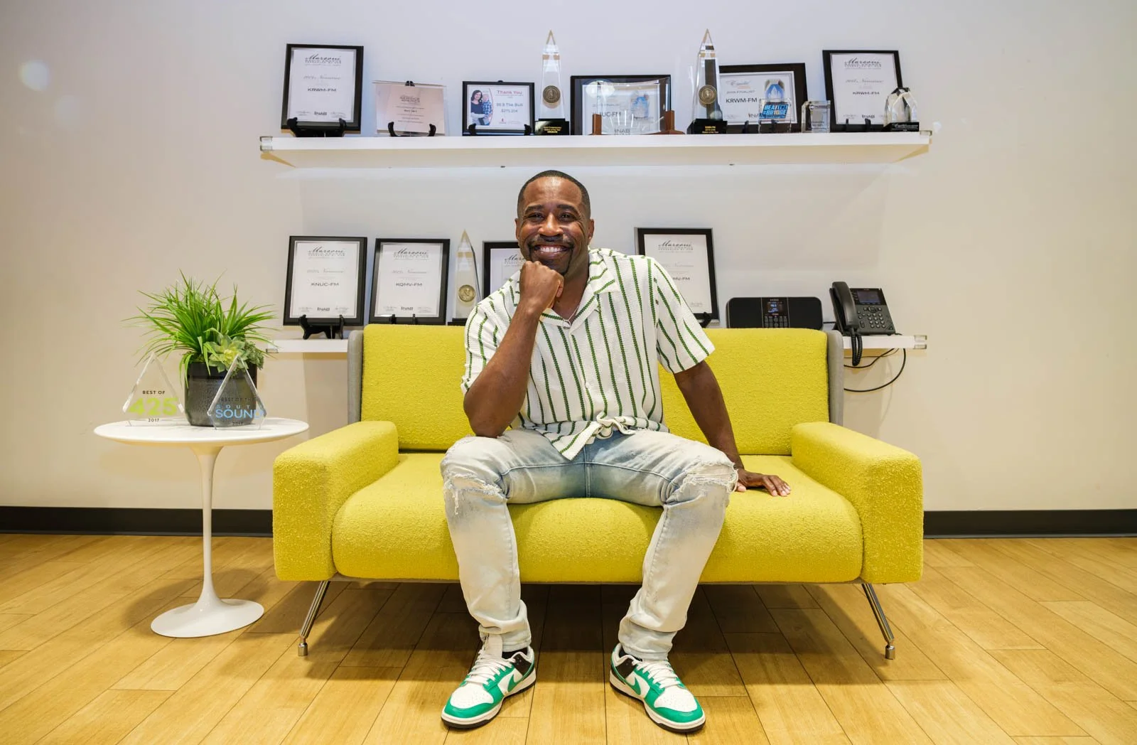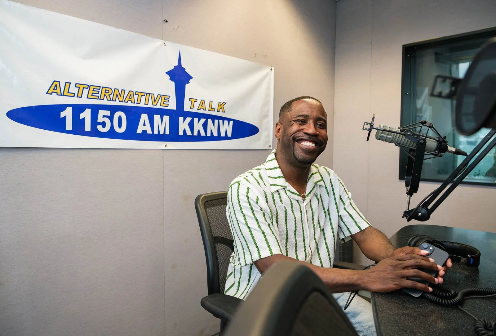 Deaunte Damper poses in the KKNW studio yesterday. (Photo: Jordan Somers)