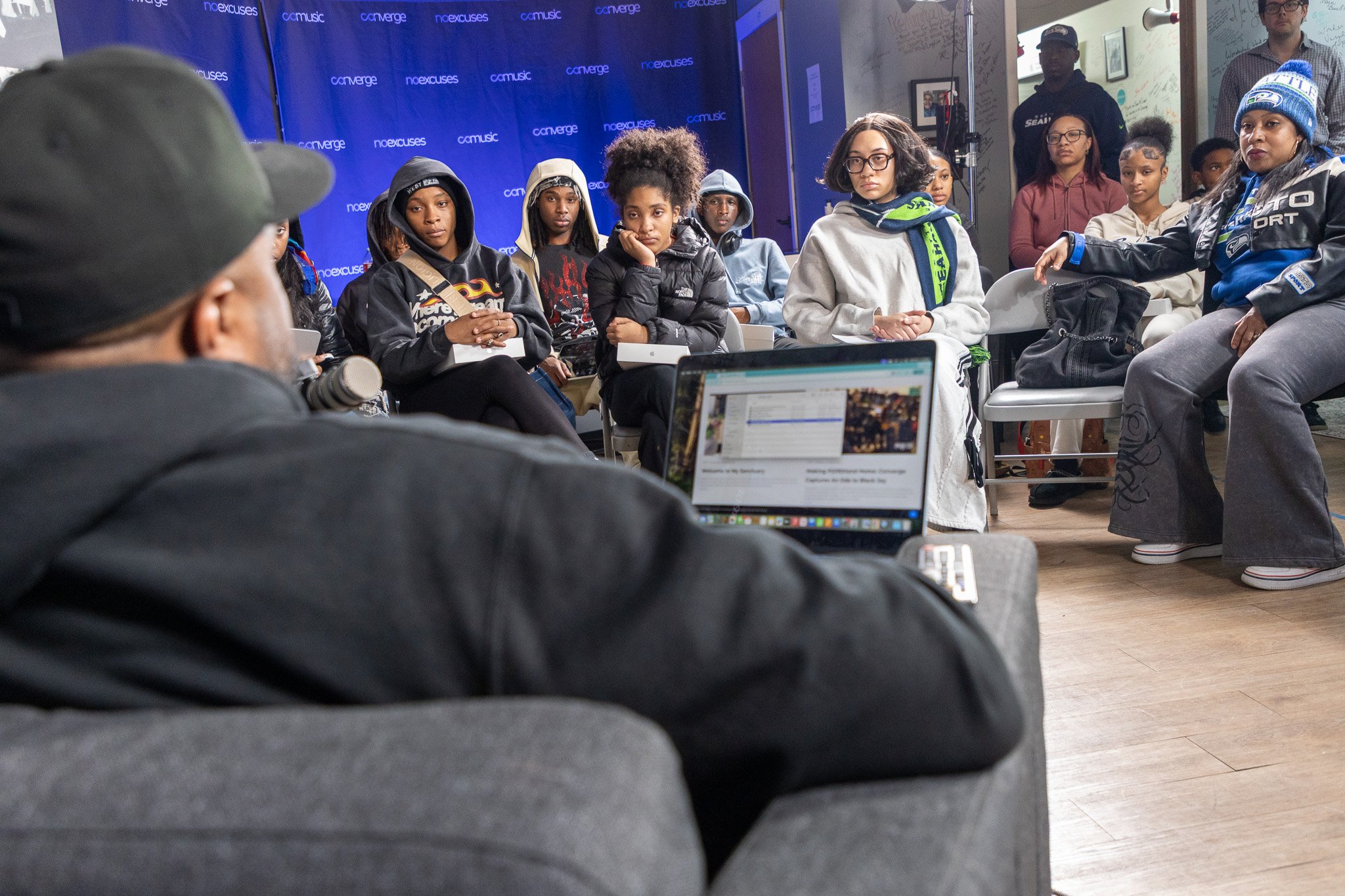 The visit served as a mentorship opportunity where the youth met with the Converge Media family, including Besa Gordon, Trae Holiday, Deaunte Damper, Ashleigh McCurdy, Erik Kalligraphy, and The Big O. The team shared insights on representation, accountability, and professional growth, aiming to inspire the students with a glimpse of what is possible when they take control of their own narrative.
