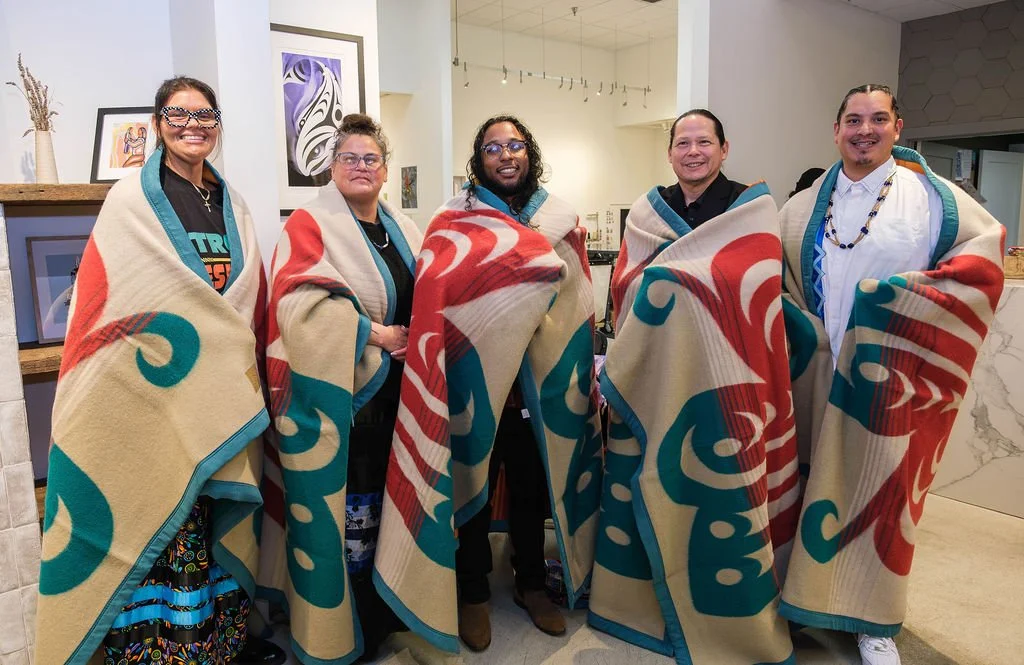 Coast Salish artist and member of the Nooksack tribe Louie Gong designed both the butterfly blanket and Huy logo, drawing inspiration from Huy’s work.