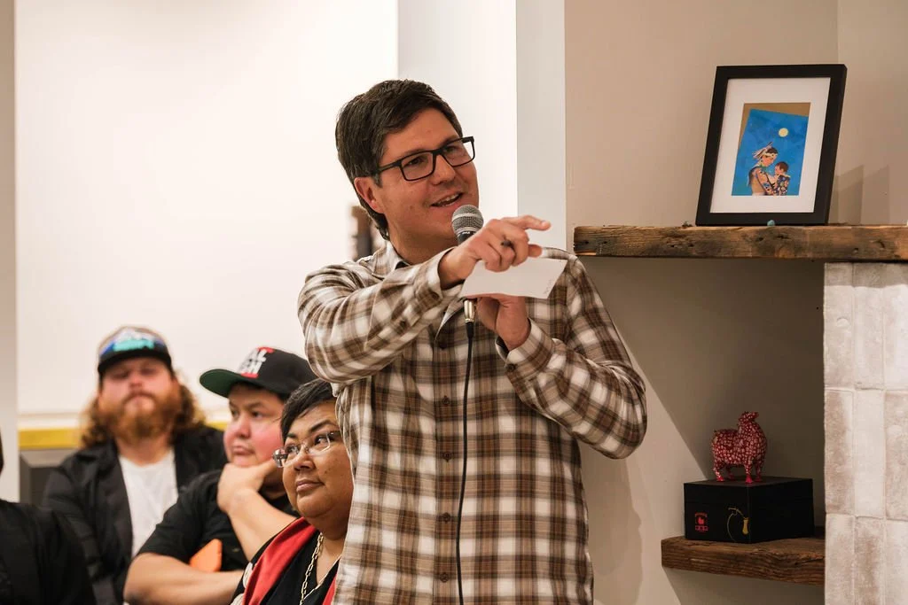 Travis ComesLast, a currently incarcerated individual and citizen of Assiniboine Sioux Tribe in Montana, joined the ceremony by phone. ComesLast has been serving a 51 year prison sentence for crimes committed before turning 21.
