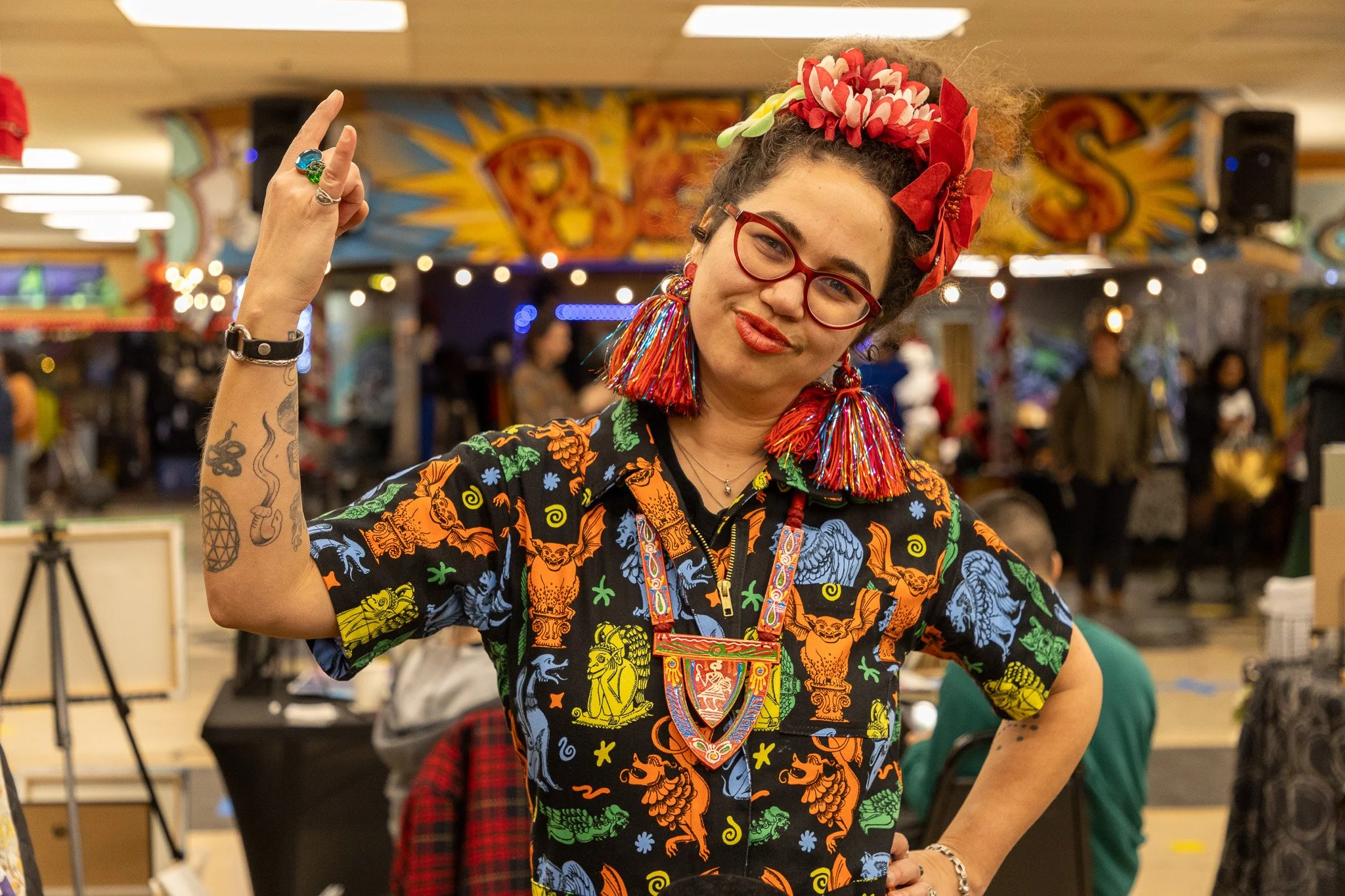 The marketplace was a hub of activity, featuring approximately 50 to 60 vendors selling everything from curated vintage, upcycled goods, and street wear to local art and jewelry. Attendees could also enjoy a coloring station, soul food, and music from DJ Razberry Beretta.