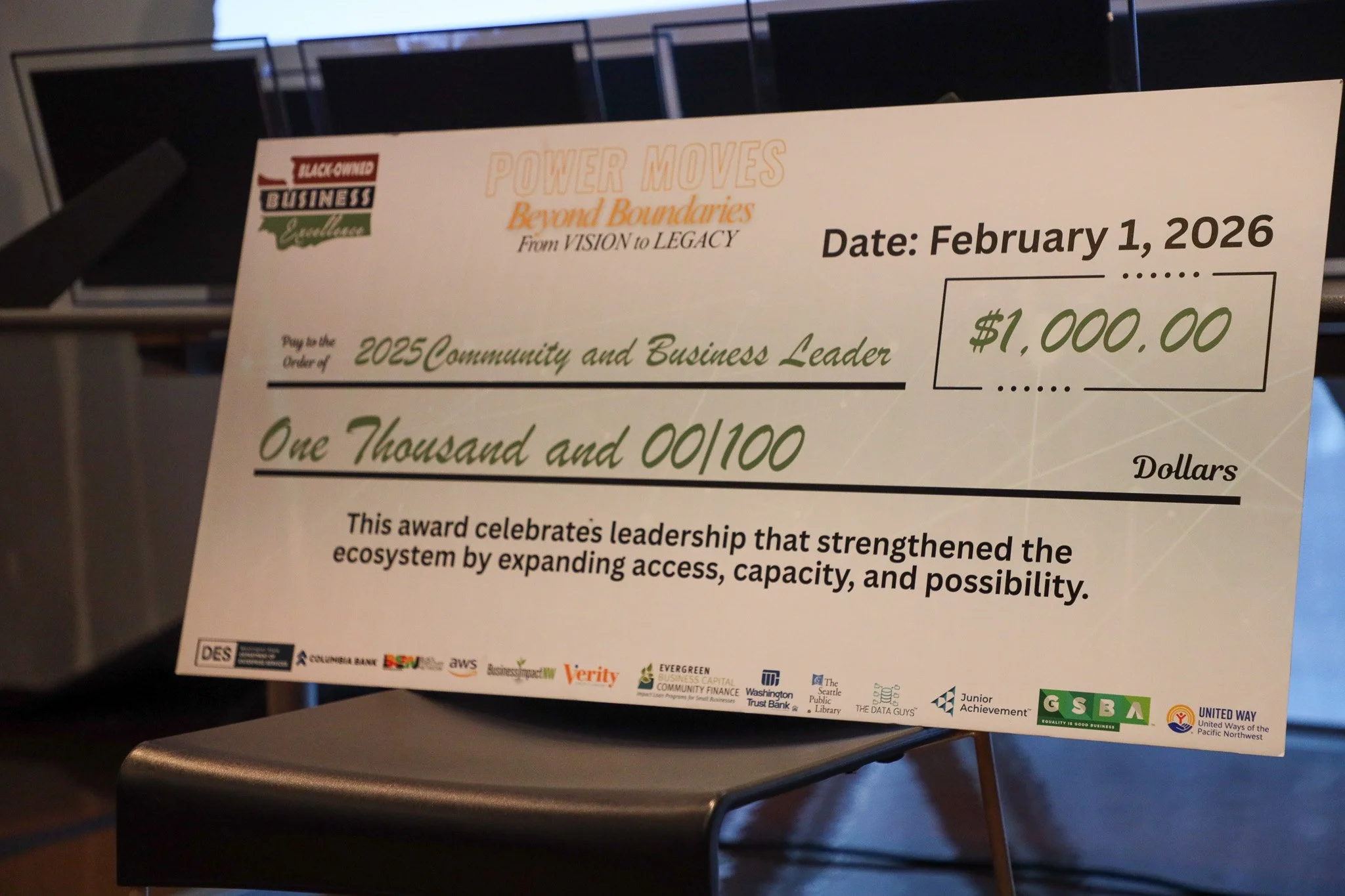 The day culminated in recognizing outstanding leadership and impact, including presenting the prestigious Community’s Choice Awards, each accompanied by a $1,000 grant for the recipients. It was a day of shared knowledge, community building, and celebrating the inspiration Black business owners that make the Emerald City great.