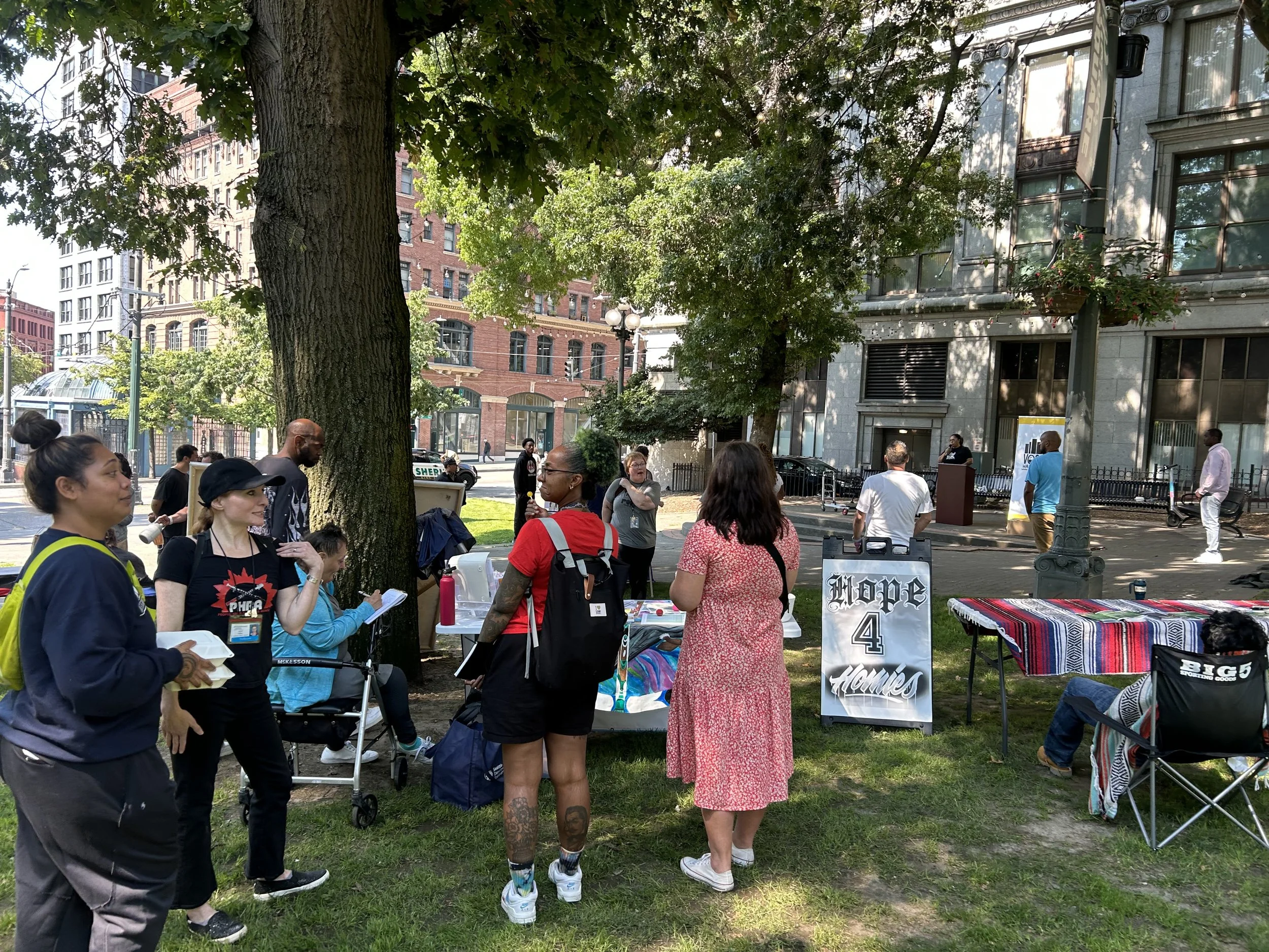 Seattle, WA - In a poignant observance of International Overdose Awareness Day on Thursday, community advocates gathered yesterday at Occidental Square adjacent to the King County Courthouse in downtown Seattle. The event, spearheaded by Vocal Washington and supported by partner agencies including PDA, Freedom Project, King County Public Health, Urban League of Metropolitan Seattle, Reach, King County Recovery Alliance, Hope for Homies, and Harrt, aimed to provide a space for grieving families, educate the public about the fentanyl crisis, and advocate for more compassionate and effective drug policies.