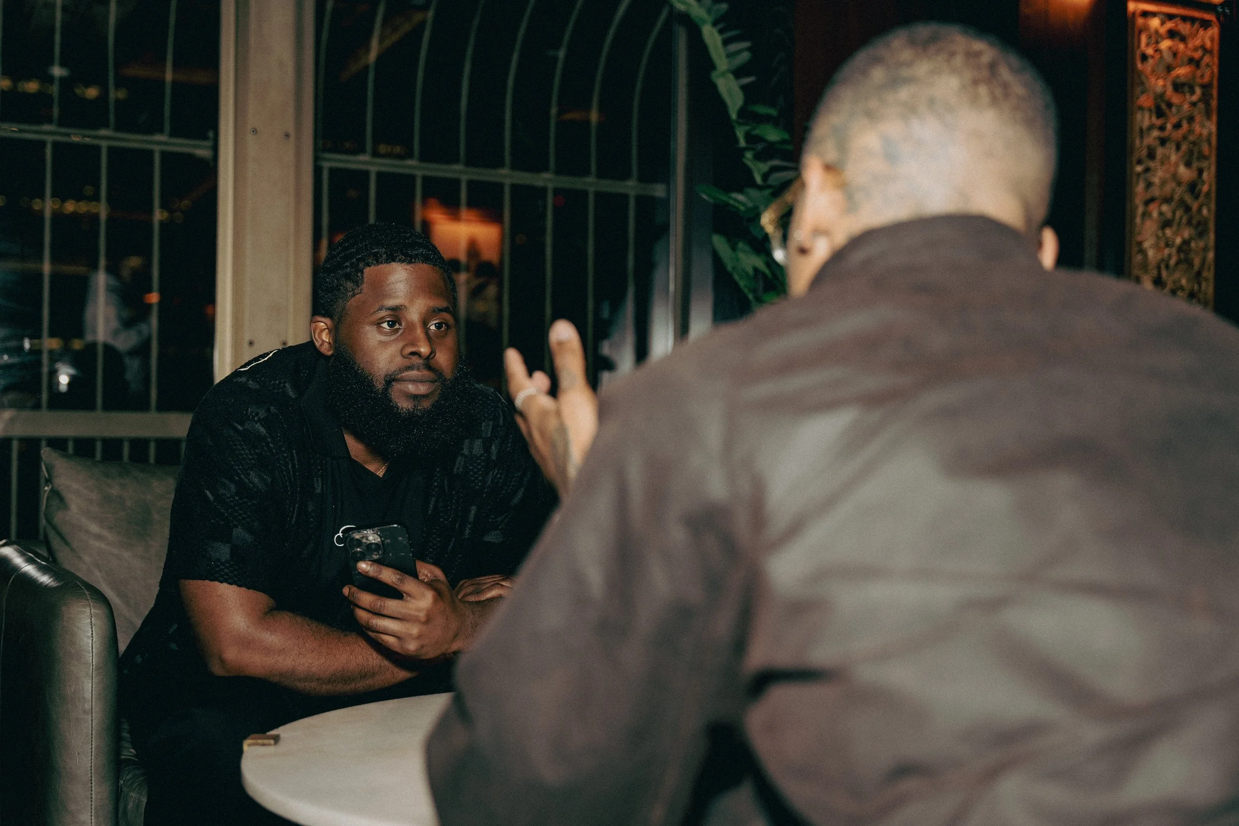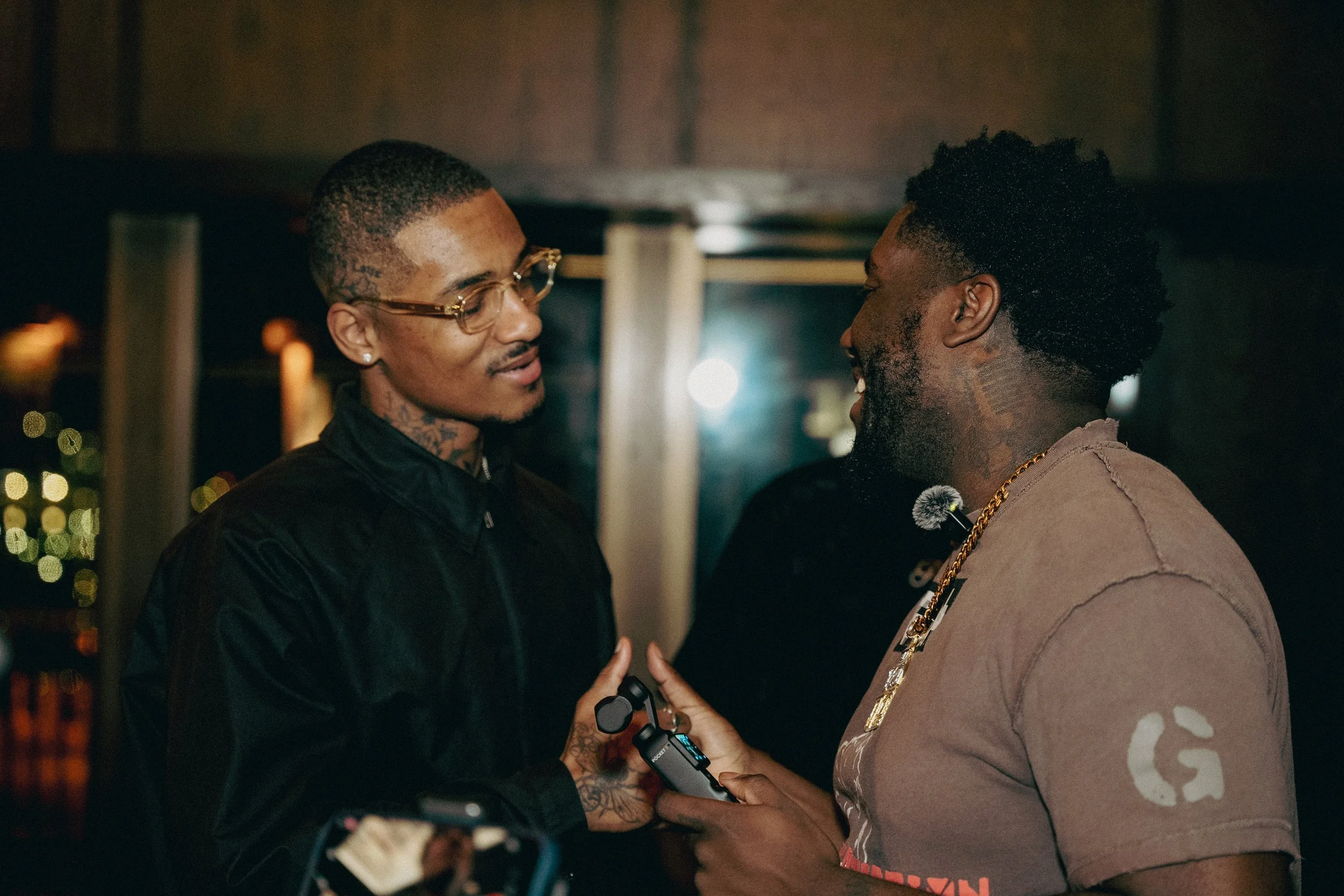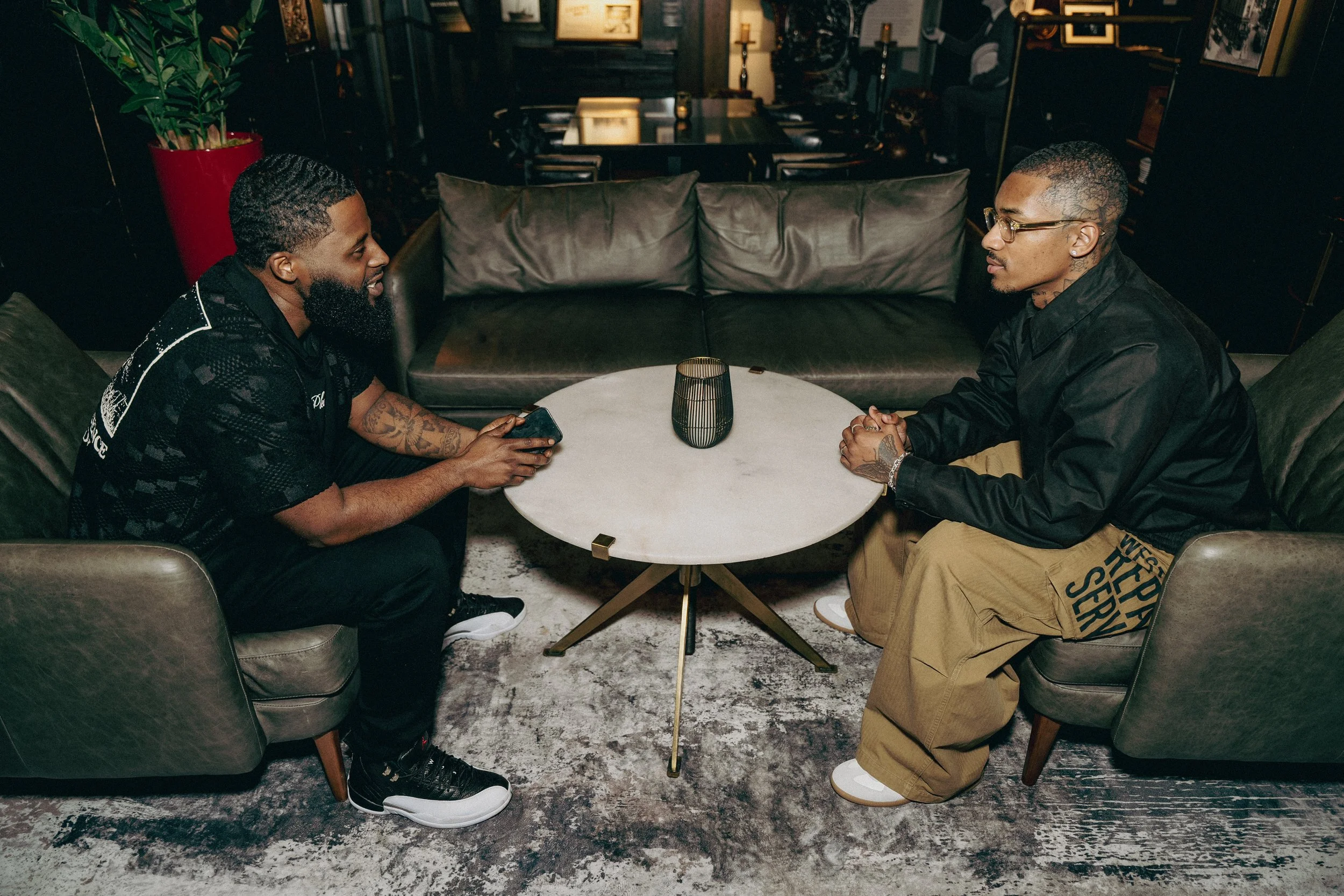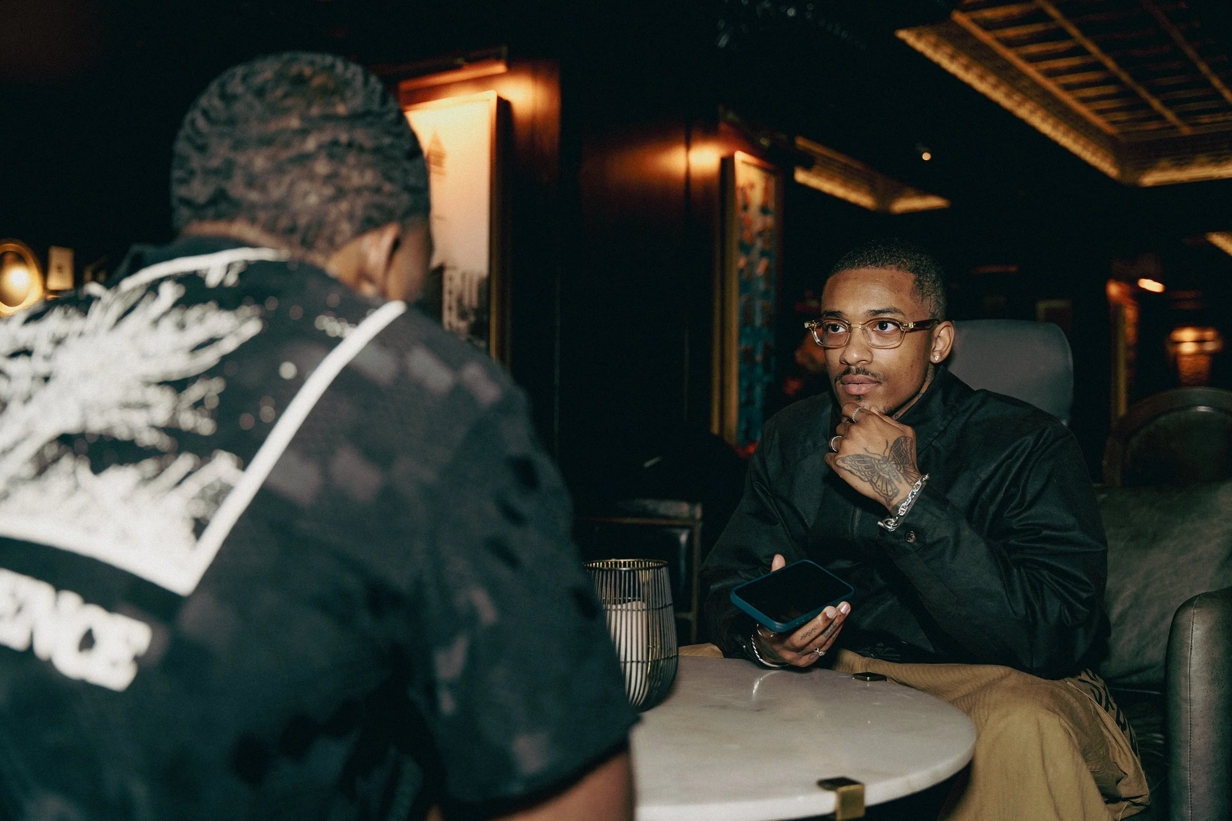 Curtis Delgardo II (left) sits with Jaymin (right) at the “Sweet Nothings” listening party at Smith Tower last week. (Photo: Che’lon McLennan)